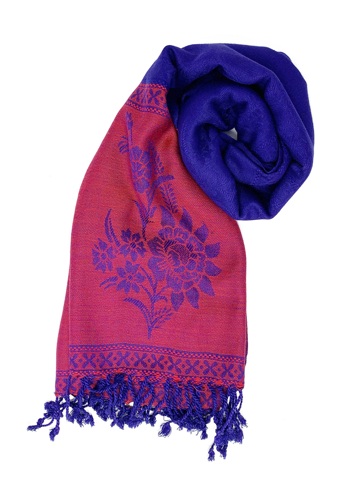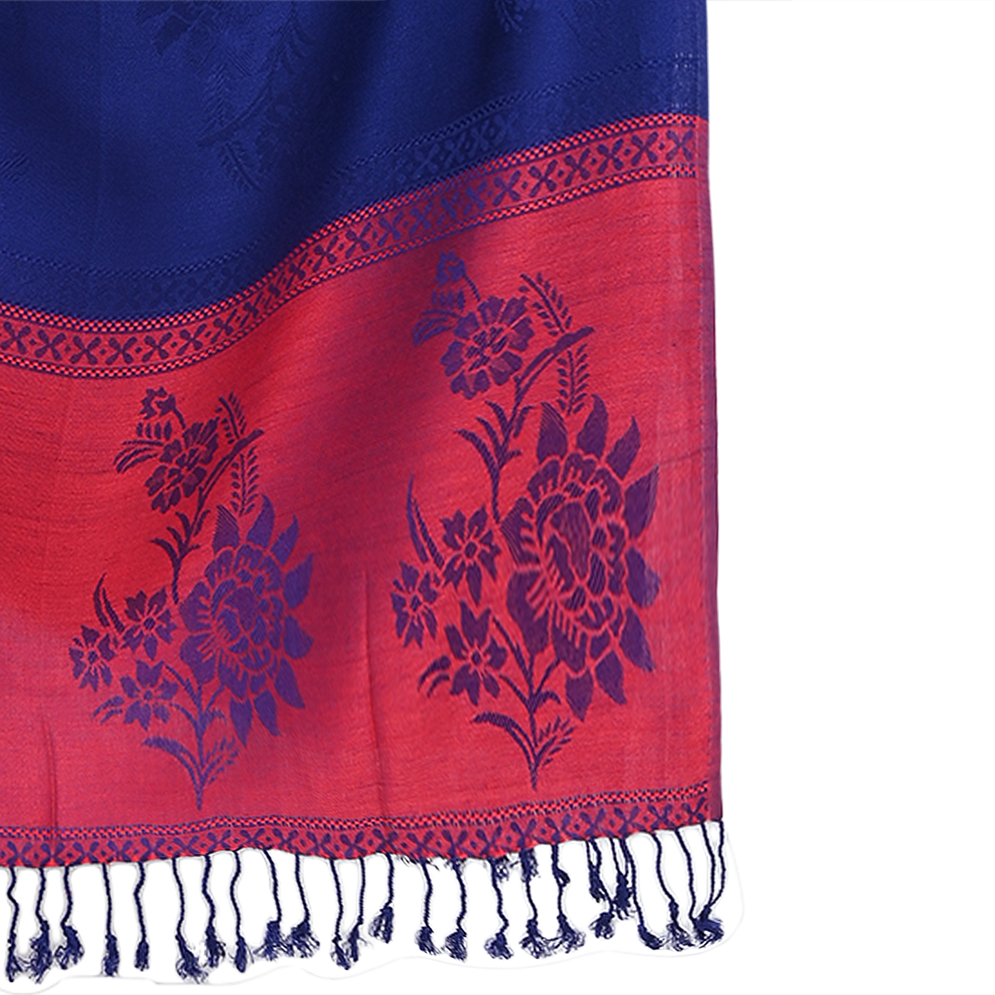 - HIGH QUALITY PASHMINA FEEL SCARF: It is a woven two tone blue scarf with red flower print, 100% viscose with pashmina feel, soft, breathable and comfortable. This is a classy scarf which can be draped to create different looks and styles. It's a perfect scarf for day and evening wear.