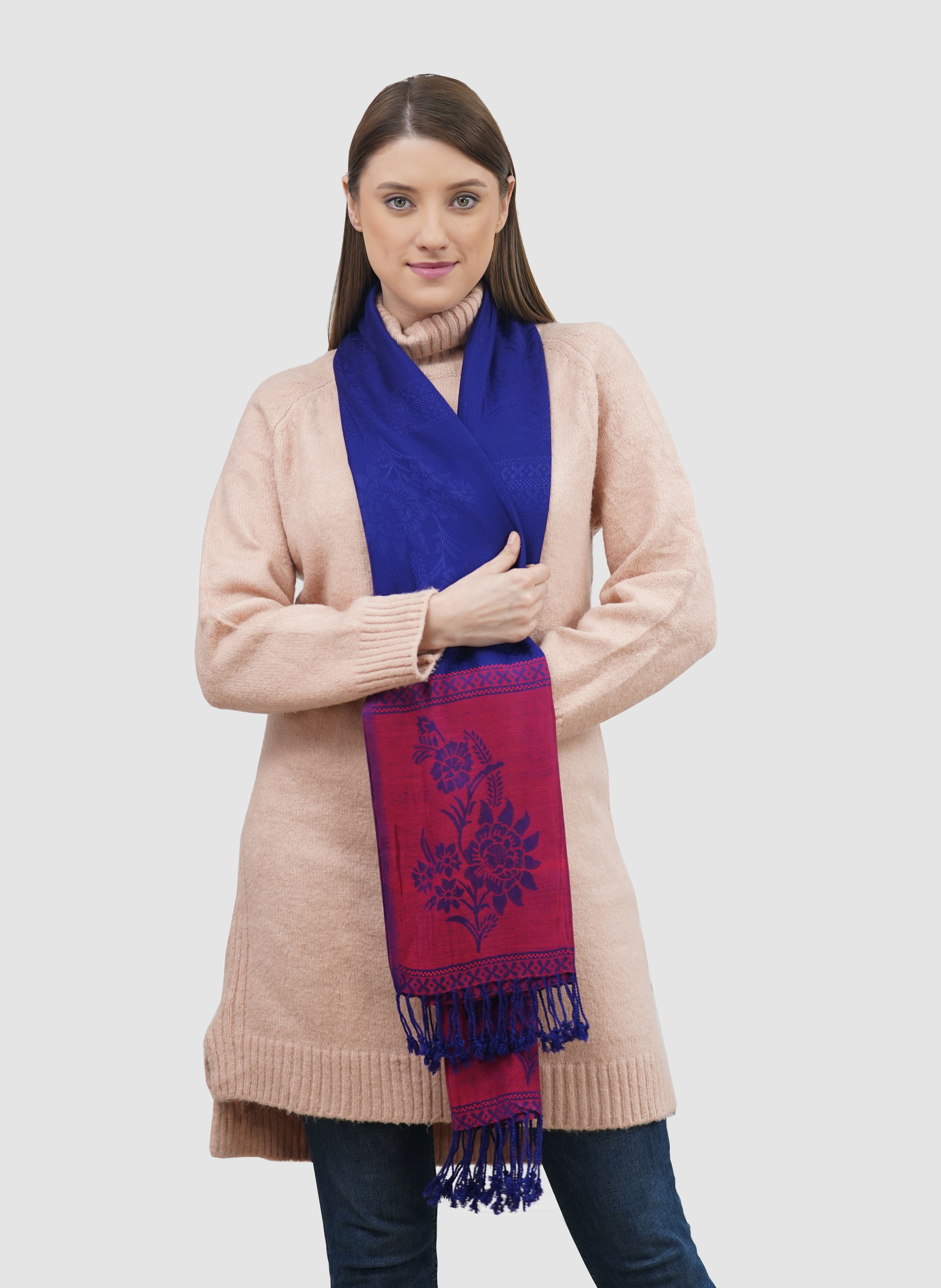 Blue and Red Flower Viscose Pashmina like Scarf, Stole, Shawl and Wrap